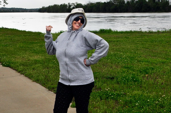 on over top of her hoodie. Lee Duquette thought Karen looked silly.