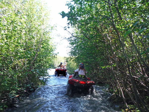Below: Karen Duquette and Ilse Blahak in the water on this backcountry ATV tour, Palmer, Alaska - not always an easy trip, but it was fun. |